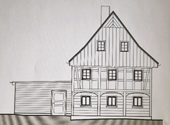 Geplant: denkmalgerechte Sanierung von Teilbereichen, mit Ausbau von zwei Blockstuben im Erdgeschoss nach historischem Bestand, mit Rückbau des rückseitigen Anbaus und Neuaufbau als Erdgeschossanbau mit Aufnahme der notwendigen Sanitärräume.